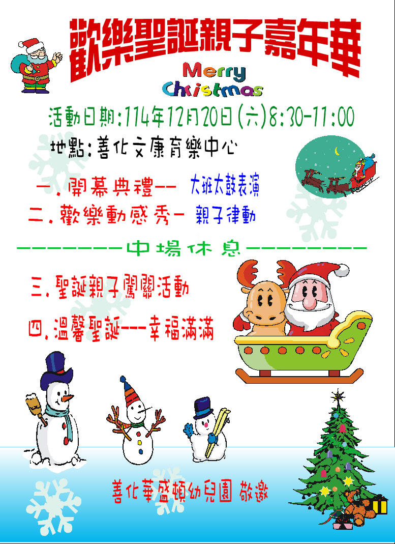 114.12.20(六)早上8:30-11:00歡樂聖誕親子嘉年華